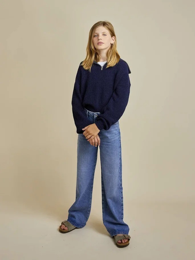 Вязаный короткий пуловер на молнии с большим воротником и с контрастным логотипом бренда сзади, из хлопкового полиамида.Производство: КИТАЙ