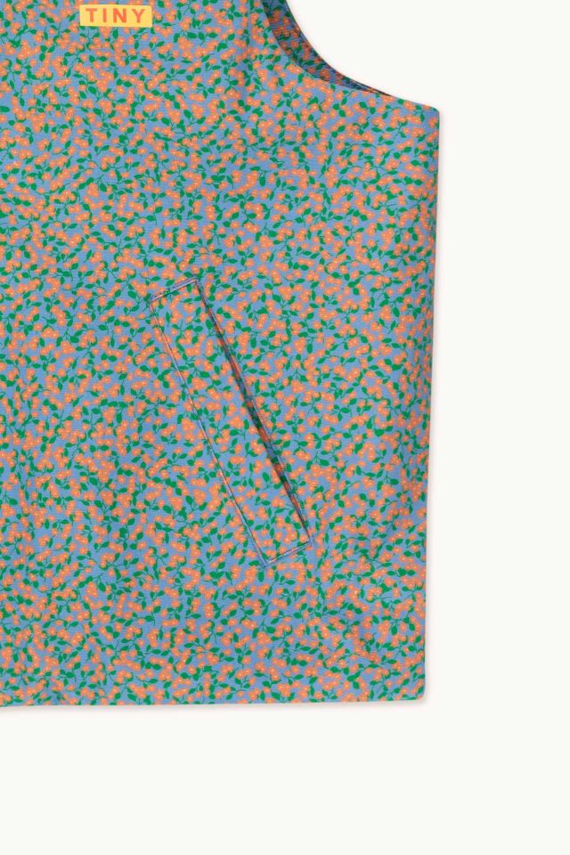 Красочный принт на сиренево-синем базовом жилете. Изготовлен из хлопчатобумажной ткани, он идеально подходит для легкой прохлады в летние дни, водонепроницаемый (3000 мм H2O), ветронепроницаемой и дышащий. Модель с высоким воротом, вырезом спереди с контрастными пуговицами и 2 передними карманами. Мягкая подкладка.