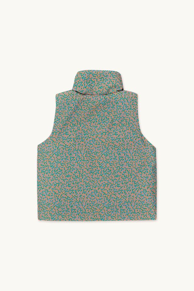 Красочный принт на сиренево-синем базовом жилете. Изготовлен из хлопчатобумажной ткани, он идеально подходит для легкой прохлады в летние дни, водонепроницаемый (3000 мм H2O), ветронепроницаемой и дышащий. Модель с высоким воротом, вырезом спереди с контрастными пуговицами и 2 передними карманами. Мягкая подкладка.