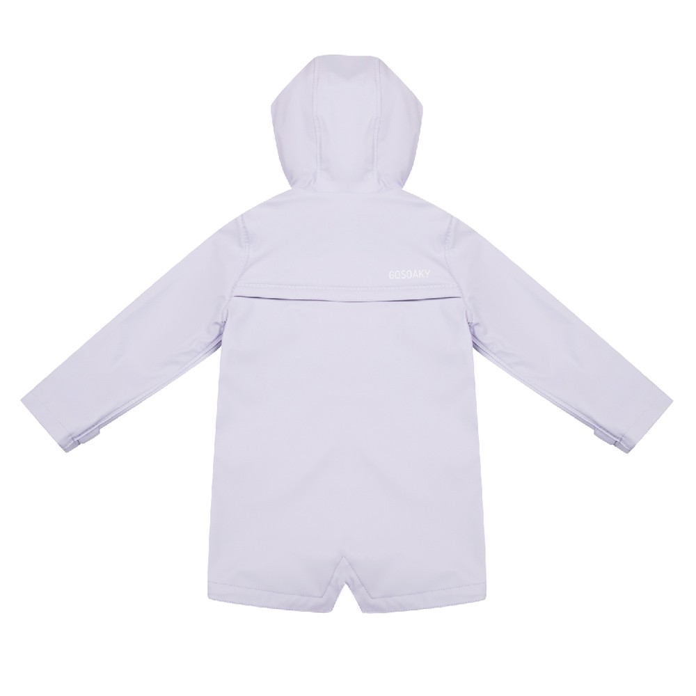 Непромокаемая куртка нежно фиолетового цвета с капюшоном, Застегивается на молнию и сверху дополнительно на кнопки.Внутренняя ткань - мягкий трикотаж. Капюшон регулируется резинкой по объему головы.Производство: КИТАЙ