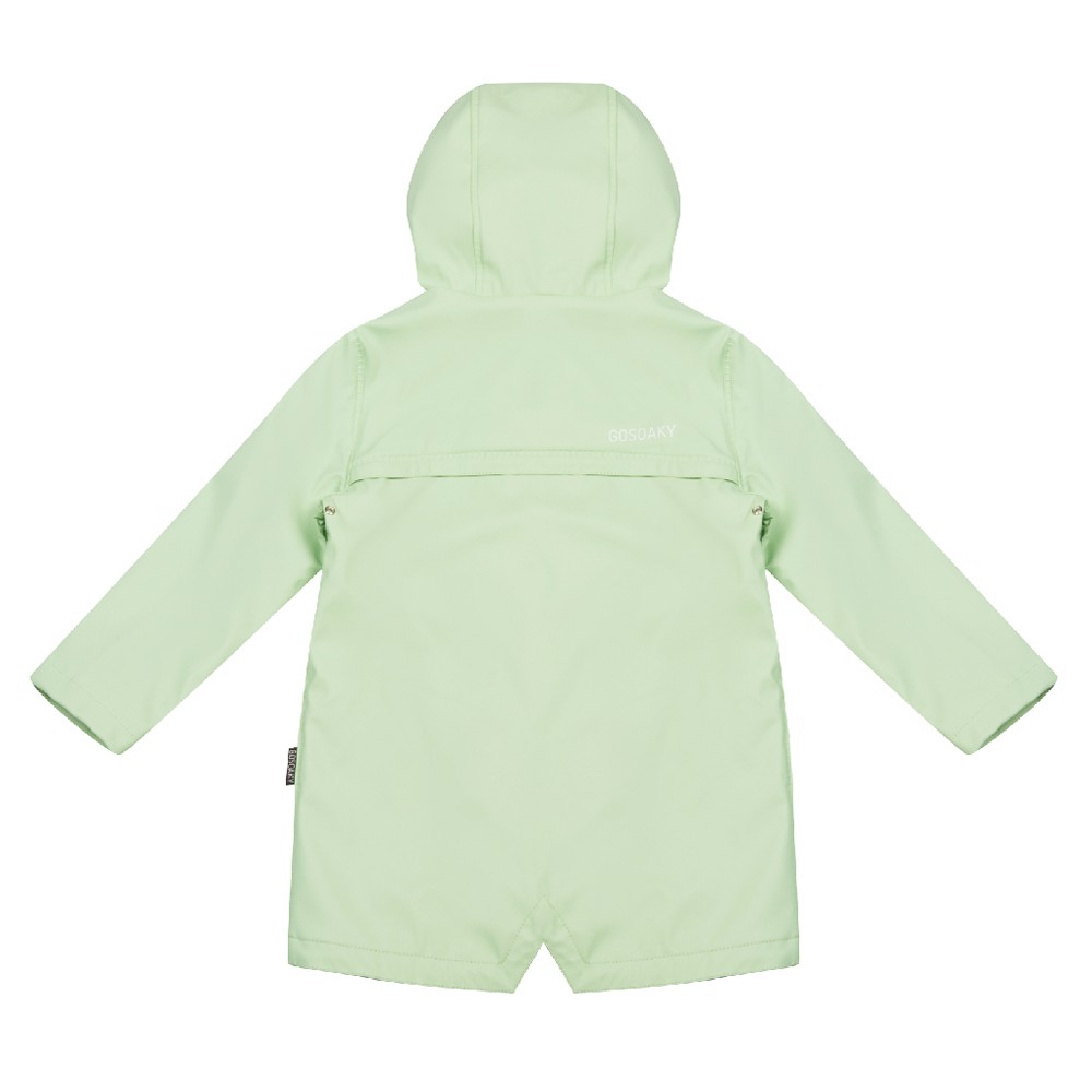 Непромокаемая куртка нежно салатового цвета с капюшоном, Застегивается на молнию и сверху дополнительно на кнопки.Внутренняя ткань - мягкий трикотаж. Капюшон регулируется резинкой по объему головы.Производство: КИТАЙ