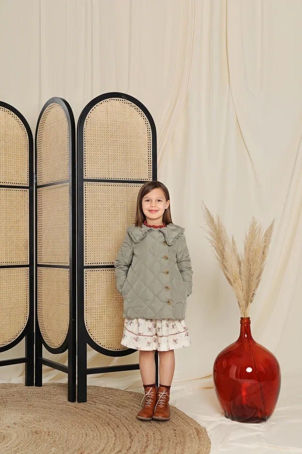 Утепленная куртка на пуговицах с большим воротником, отделанным рюшами. Практичная и удобная модель.Производство: КИТАЙ