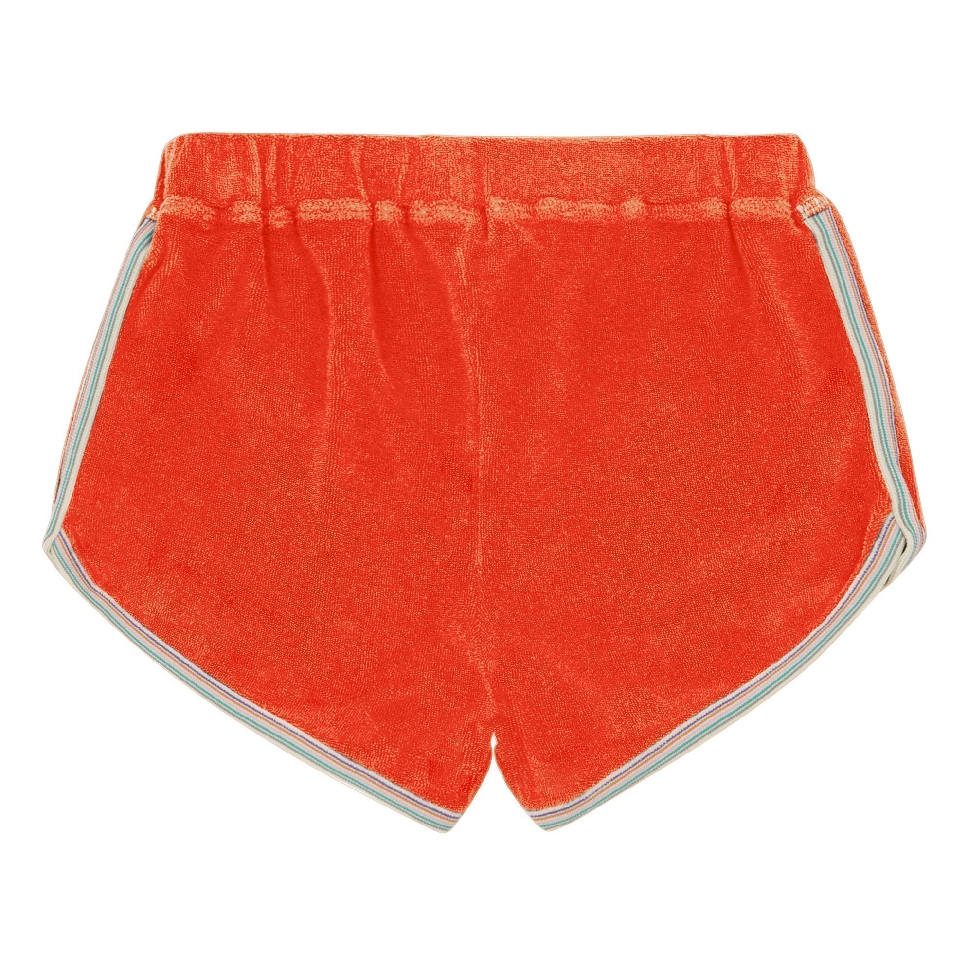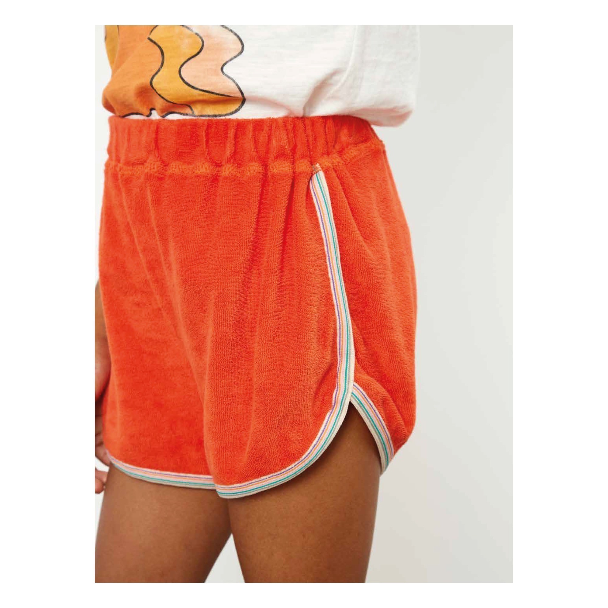 Красные махровые шорты на удобной резинке. Ткань очень мягкая и комфортная. Цветной лампас создает настроение.Незаменимая вещь для лета, но и в любое время года их можно надеть дома. Уютно и стильно.Производство: ПОРТУГАЛИЯ