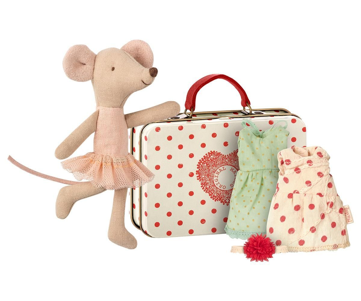 Мышка балерина часто путешествует на гастролях, поэтому у нее всегда под рукой красивый чемоданчик. В наборе также есть два платья приятных цветов.Входят следующие позиции:1 x Мышка старшая сестра Балерина (арт. 16-6787-00)1 x Чемодан вкл. 2 платья для мышей (арт. 16-7789-00)