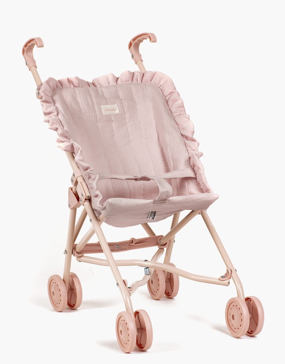 Складная коляска для куклы с стёганым хлопковым сиденьем и оборками.Сложенные размеры: Длина 63 см x Ширина 11 см x Высота 11 см.Раскрытые размеры: длина 42 см x ширина 28 см x высота 55 см.