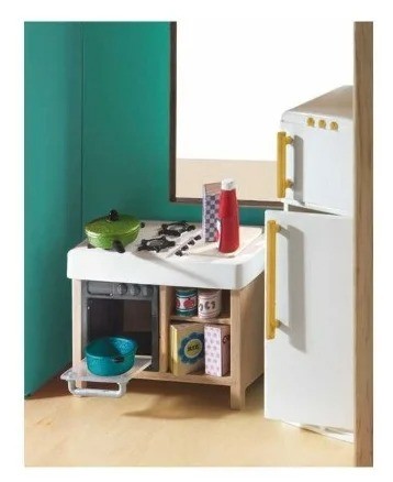 Эта кухня для кукольного дома от известного производителя DJECO, идеально подойдет для детей от 4-х лет. В набор входит:  холодильник, тумба с мойкой, духовой шкаф с плитой и полочками, кастрюльки и множество маленьких цветных элементов, с которыми игра станет еще интереснее.Размер упаковки- 17 х 15 х 6 смДля кукол размером 9-12 смПроизводитель: КитайСтрана бренда: Франция