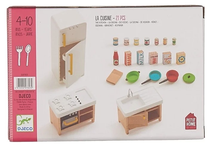 Эта кухня для кукольного дома от известного производителя DJECO, идеально подойдет для детей от 4-х лет. В набор входит: холодильник, тумба с мойкой, духовой шкаф с плитой и полочками, кастрюльки и множество маленьких цветных элементов, с которыми игра станет еще интереснее.Размер упаковки- 17 х 15 х 6 смДля кукол размером 9-12 смПроизводитель: КитайСтрана бренда: ФранцияПроизводство: КИТАЙ
