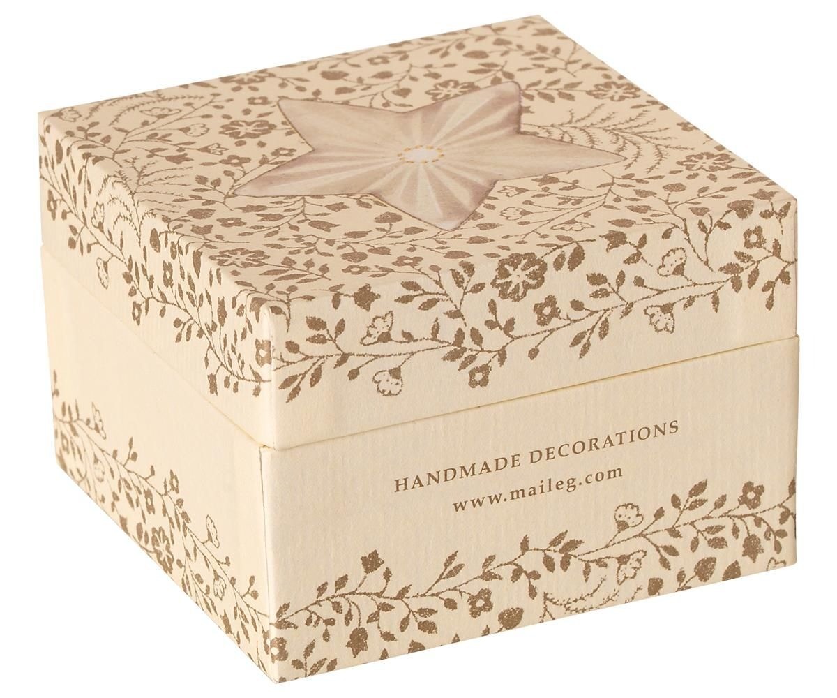 -Металлические елочные игрушки в коробке, белые с золотом 6 шт.