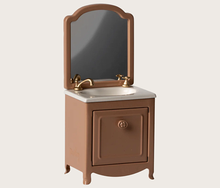 Раковина с зеркалом для мыши - Коричневая