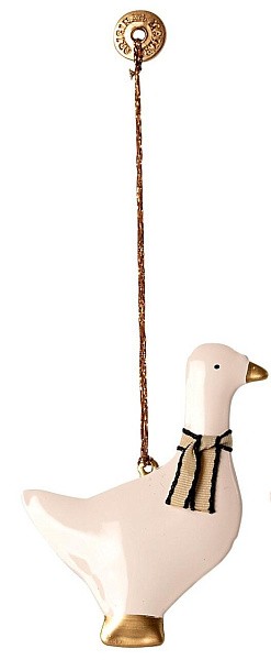 Металлическая елочная игрушка ГУСЬ, с черным шарфиком, '20