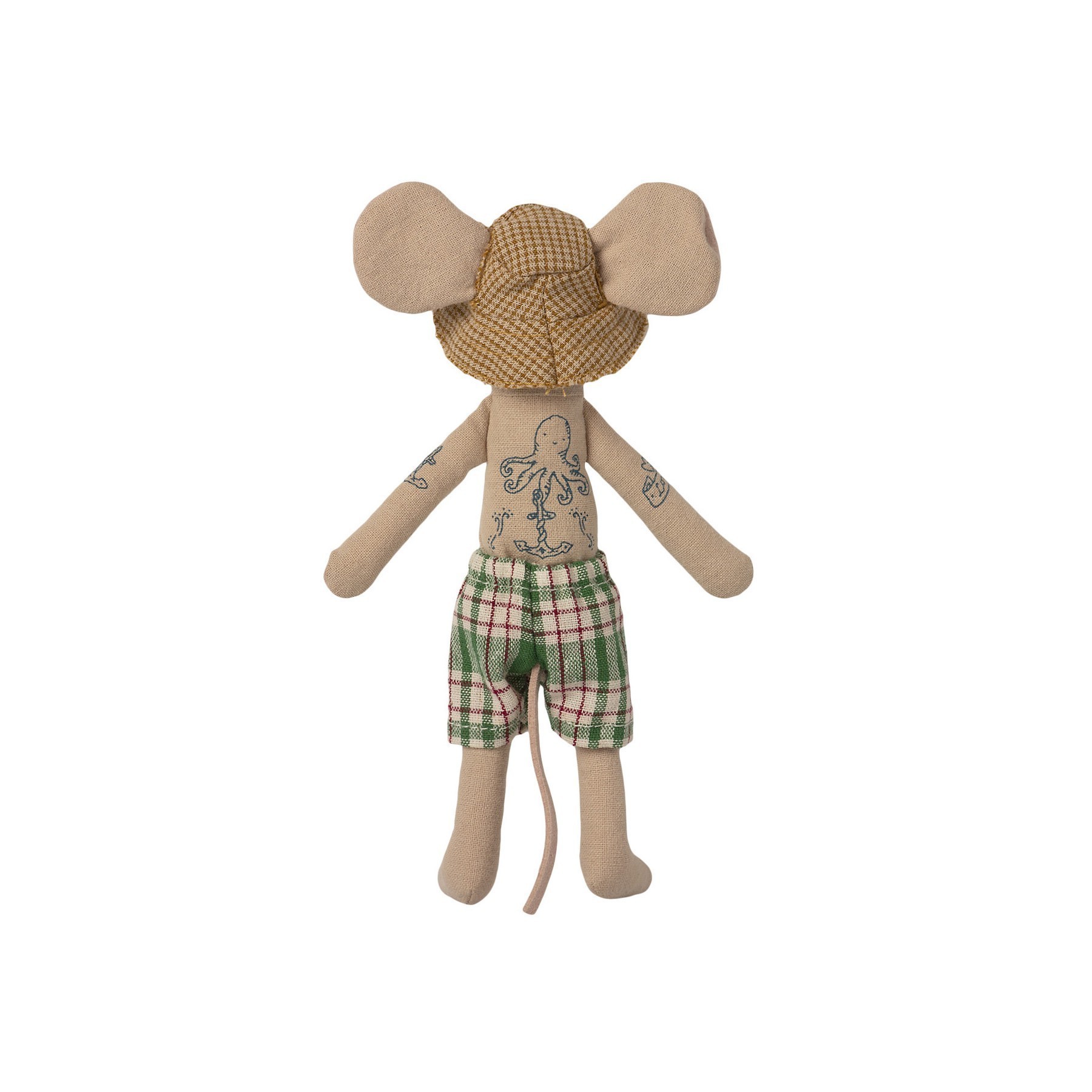 Папа в модных плавательных шортах и панаме, всегда начеку, даже на отдыхе. Быстро переодевшись в своей пляжной кабинке, он сядет в шезлонг и будет наблюдать за всеми членами семейства и сразу поспешит на помощь, если что-то произойдет.Размер кабинки: Длина х Ширина х Высота - 6,5 х 7,5 х 17,5 смВысота мышонка - 15 см