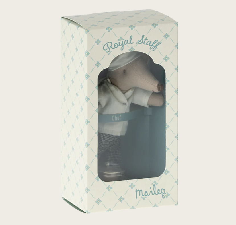 Мышонок-повар с кастрюлей для супа и ложкой