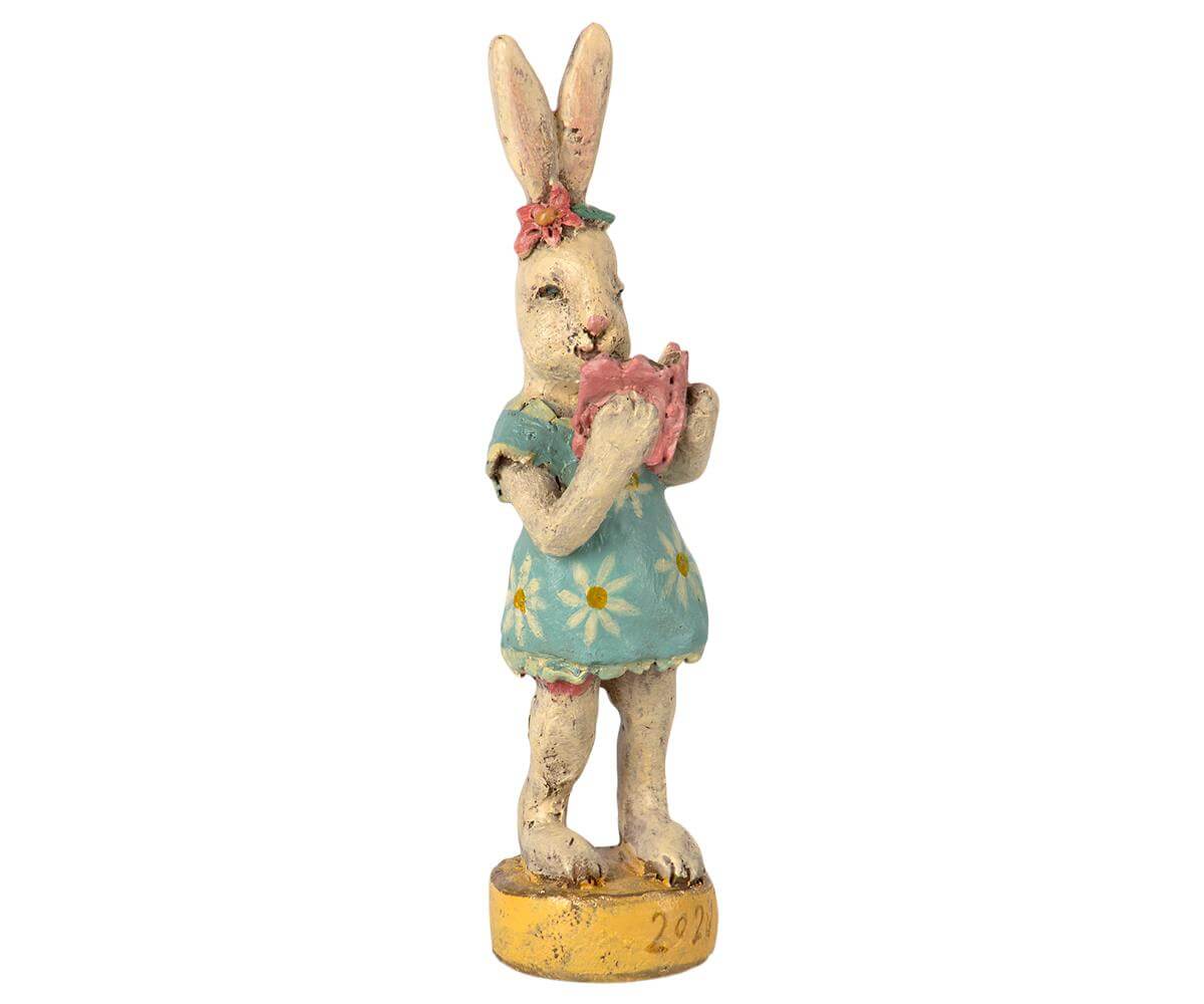 Вы хотите украсить свой праздник Пасхи? Эта изящная статуэтка поможет Вам в этом, милая зайка в платьице поднимет Вам настроение, и сможет стать первой игрушкой в Вашей будущей коллекции.Размер: высота статуэтки - 15,5 см.Производство: КИТАЙ