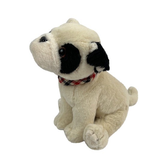 Плюшевая игрушка Собачка SPRING DOG, белая с черным ухом, 15 см