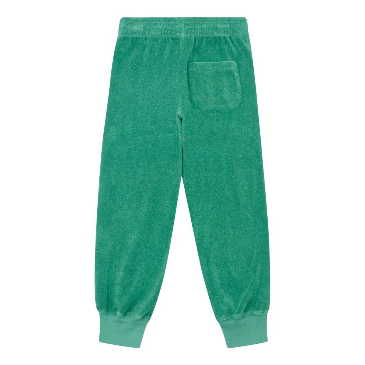 Спортивные брюки из махровой ткани яркого зеленого цвета. На резинке, дополнительный шнурок для более надежной фиксации на талии. Большие внутренние карманы, накладной карман сзади. Манжет внизу.