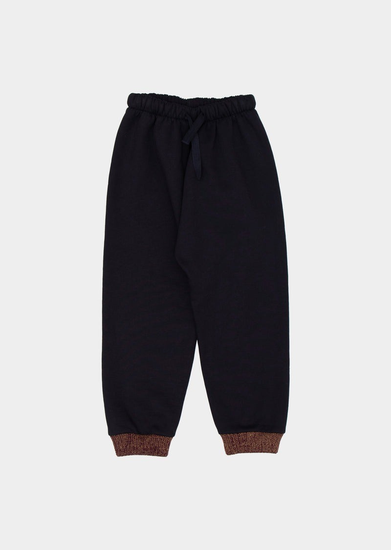 Брюки, выполненные из натурального и дышащего трикотажного хлопка, имеют эластичный пояс с завязками и контрастную бордовo-рыжую рубчатую текстуру по низу брюк. Это идеальные спортивные брюки для спокойных домашних дней в сочетании с нашим джемпером аналогичной расцветки, которые дополнят повседневный образ.