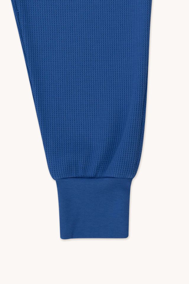 Спортивные брюки с эластичным поясом, ребристой отделкой на манжетах, контрастный шнурок. Изготовлен из ткани с вафельной текстурой хлопка пима, обеспечивающей максимальный комфорт и долговечность.Производство: ПОРТУГАЛИЯ