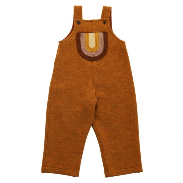 Комбинезон, из 100% шерстяной ткани, импортированной из Италии. Особый штрих ручная вязка крючком, радужный передний карман. Свободный и удобный крой.Производство: БОЛГАРИЯ