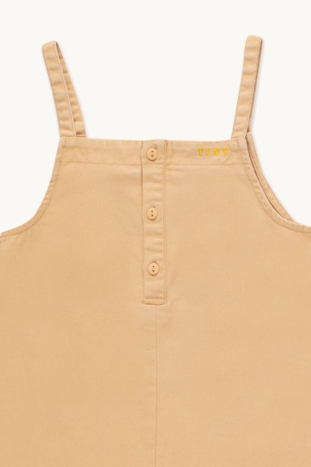 Летние пастельные тона, гармонирующие со средиземноморским небом. Этот однотонный комбинезон миндального цвета свободного кроя must-have лета. Удобная застежка спереди на пуговицах, узкие бретели, лаконичная брендированная вышивка.Производство: ИНДИЯ