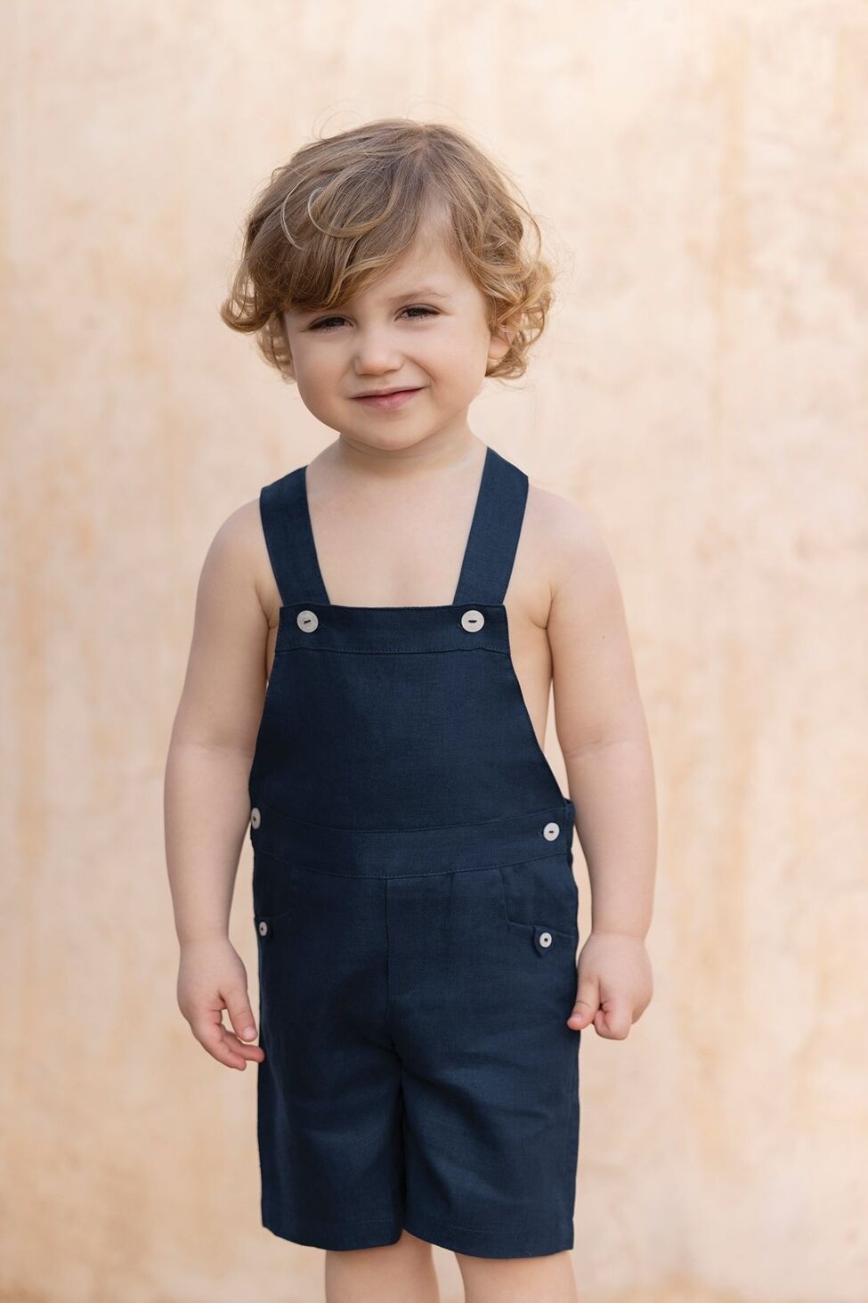 Мы влюбились в этот великолепный короткий комбинезон синего цвета из 100% льна, который сделает малыша таким же элегантным, как и люди постарше во время различных мероприятий. Кнопки облегчат одевание. Производство: КИТАЙ