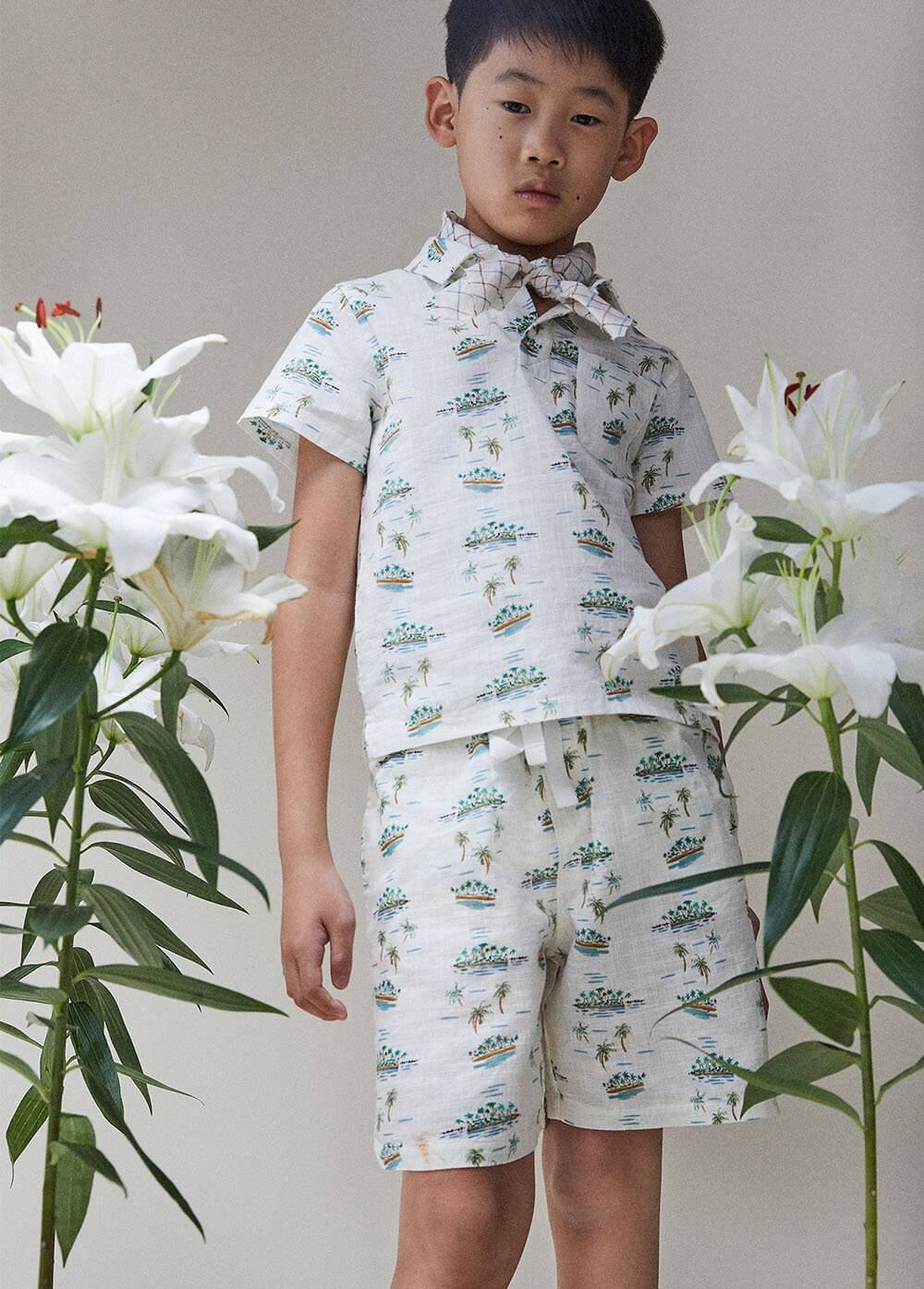 Легкие и удобные шорты на резинке с дополнительным шнурком для более плотной фиксации вокруг талии с тропическим принтом. Для создания комплекта, который понравится Вашему малышу артикул K710201.