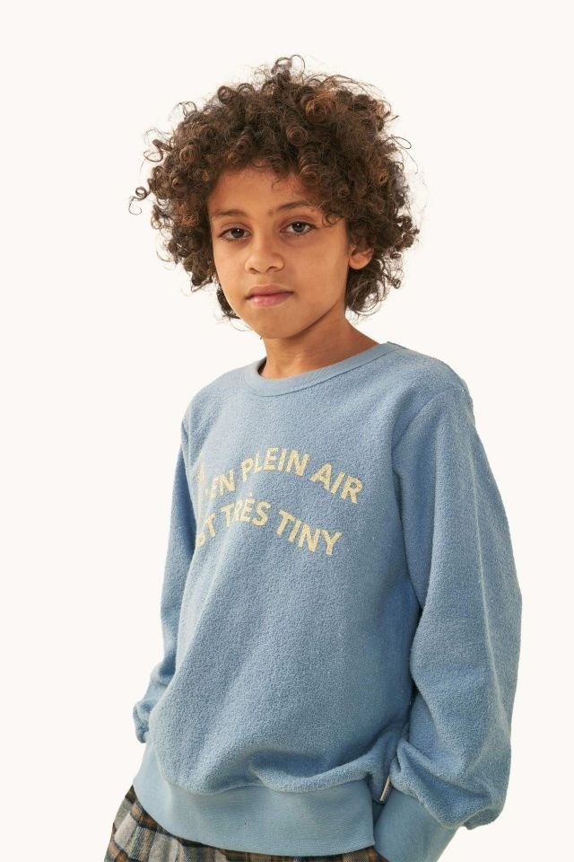 Текстовый принт на толстовке серо-голубого цвета. Длинные рукава, круглый вырез горловины и ребристая отделка на горловине и по низу. Изготовлено из органического хлопка, что обеспечивает экологичность продукта и максимальный комфорт.Производство: ПОРТУГАЛИЯ