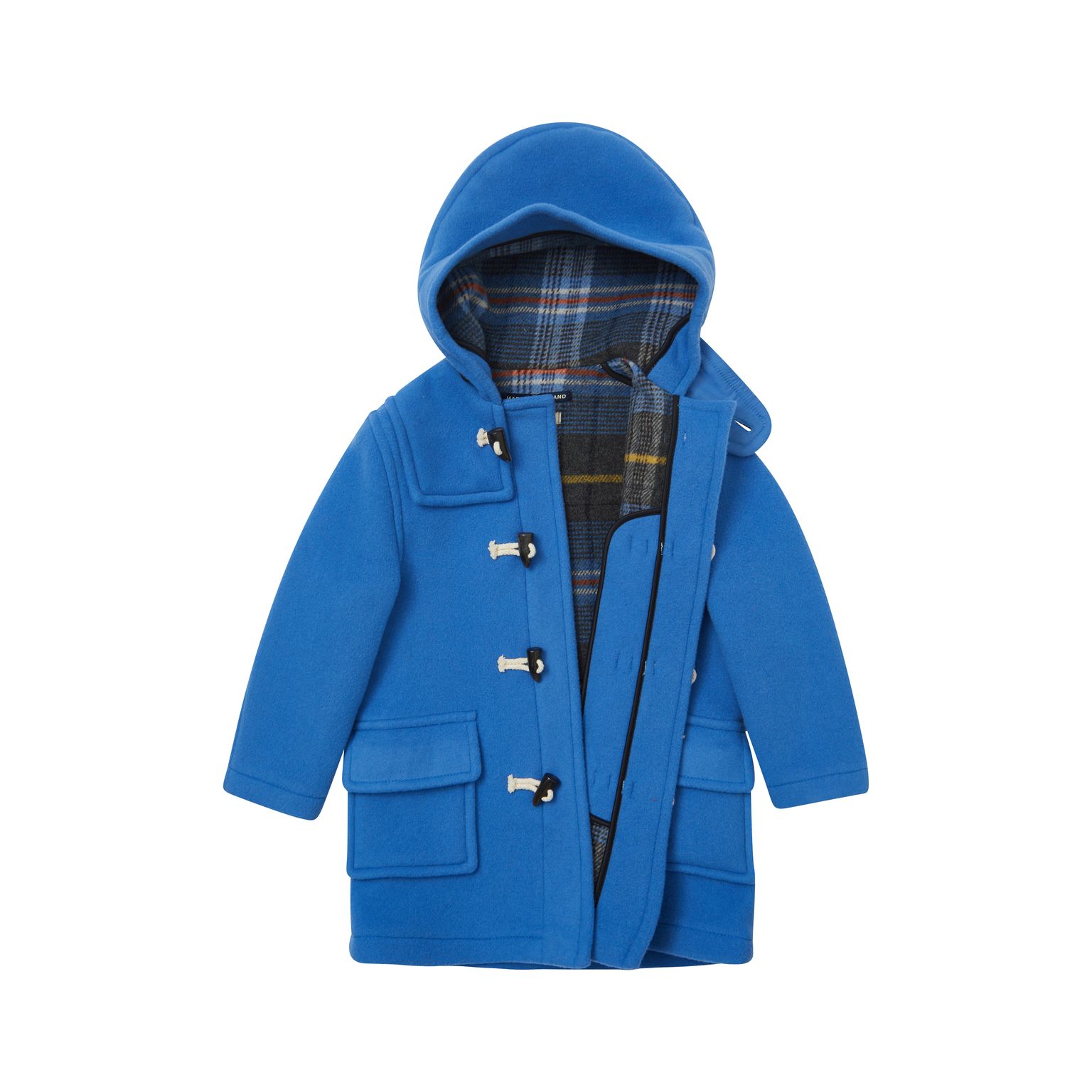 Невероятный дафлкот шикарного синего цвета с содержанием шерсти. Неизменная классика прямого кроя с монохромными застежками на пуговицах спереди и глубокими карманами.